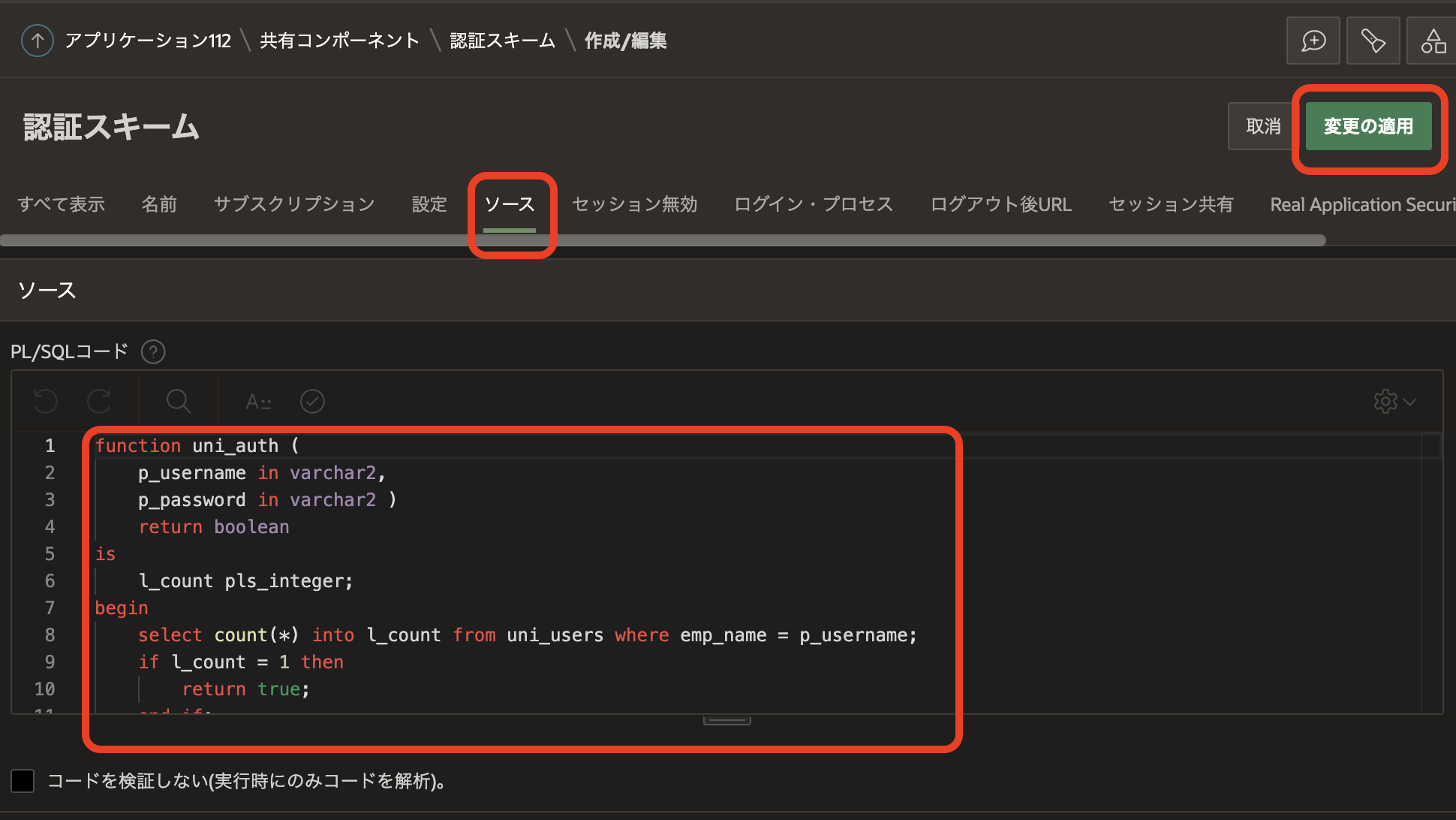 せっかく表UNI_USERSを作成したので、サインインのユーザーがハードコードされている認証スキームを更新します。