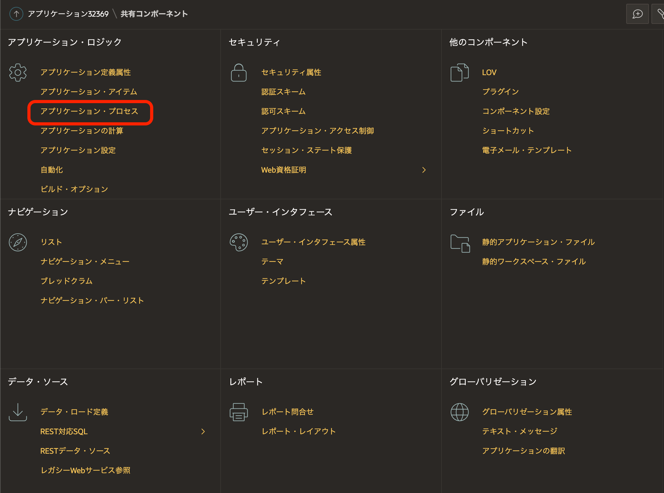 共有コンポーネントのアプリケーション・プロセスを開きます。