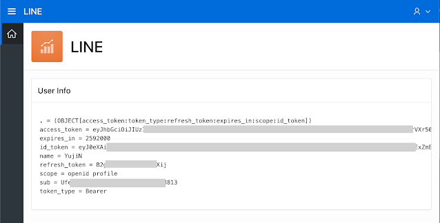 以下のような表示になります。トークンなどは永続的なものではありませんが、センシティブな情報ではあるので、不要になったら認証後のプロシージャからコードは取り除いた方が安全でしょう。