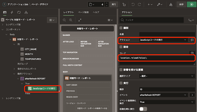 対話モード・レポートのリフレッシュ後に、ページのリロードを実行することが、ワークアラウンドのひとつです。
