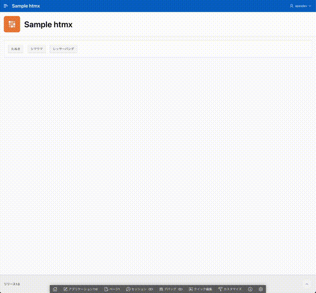 アプリケーション・ビルダーに移り、htmxを組み込んだページを作成します。