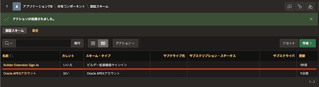 作成済みの認証スキームが一覧されます。作成をクリックします。